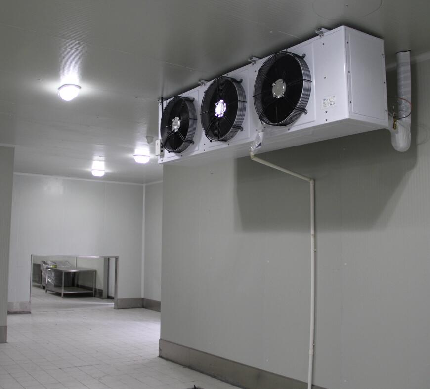 2、1號(hào)水果恒溫庫(kù)和2號(hào)水果恒溫庫(kù)制冷系統(tǒng)分別配備的是一套8HP和5HP美國(guó)艾默生谷輪中溫渦旋壓縮機(jī)組(含冷凝器、電磁閥、壓力控制器等),該機(jī)組制冷量大,性?xún)r(jià)比高,安全可靠。兩間冷庫(kù)內(nèi)各配備了一套浙江凱迪系列高效強(qiáng)風(fēng)型冷風(fēng)機(jī),該風(fēng)機(jī)運(yùn)行穩(wěn)定噪音小,送風(fēng)距離遠(yuǎn),使得庫(kù)內(nèi)降溫速度快,極大增強(qiáng)了化霜效果,增加快速對(duì)流循環(huán),從而達(dá)到每個(gè)角落的溫度均勻性。
